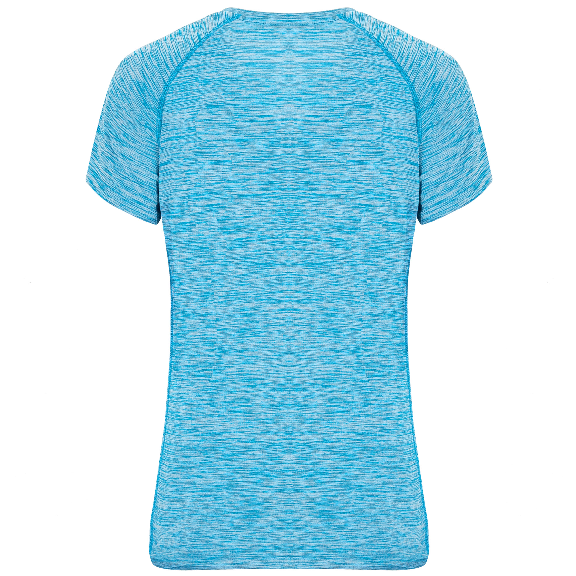 Camiseta técnica entallada de mujer en tejido poliéster de manga corta estilo ranglán. Cuello redondo. Camiseta de tejido con caída confortable y fácilmente adaptable al cuerpo.